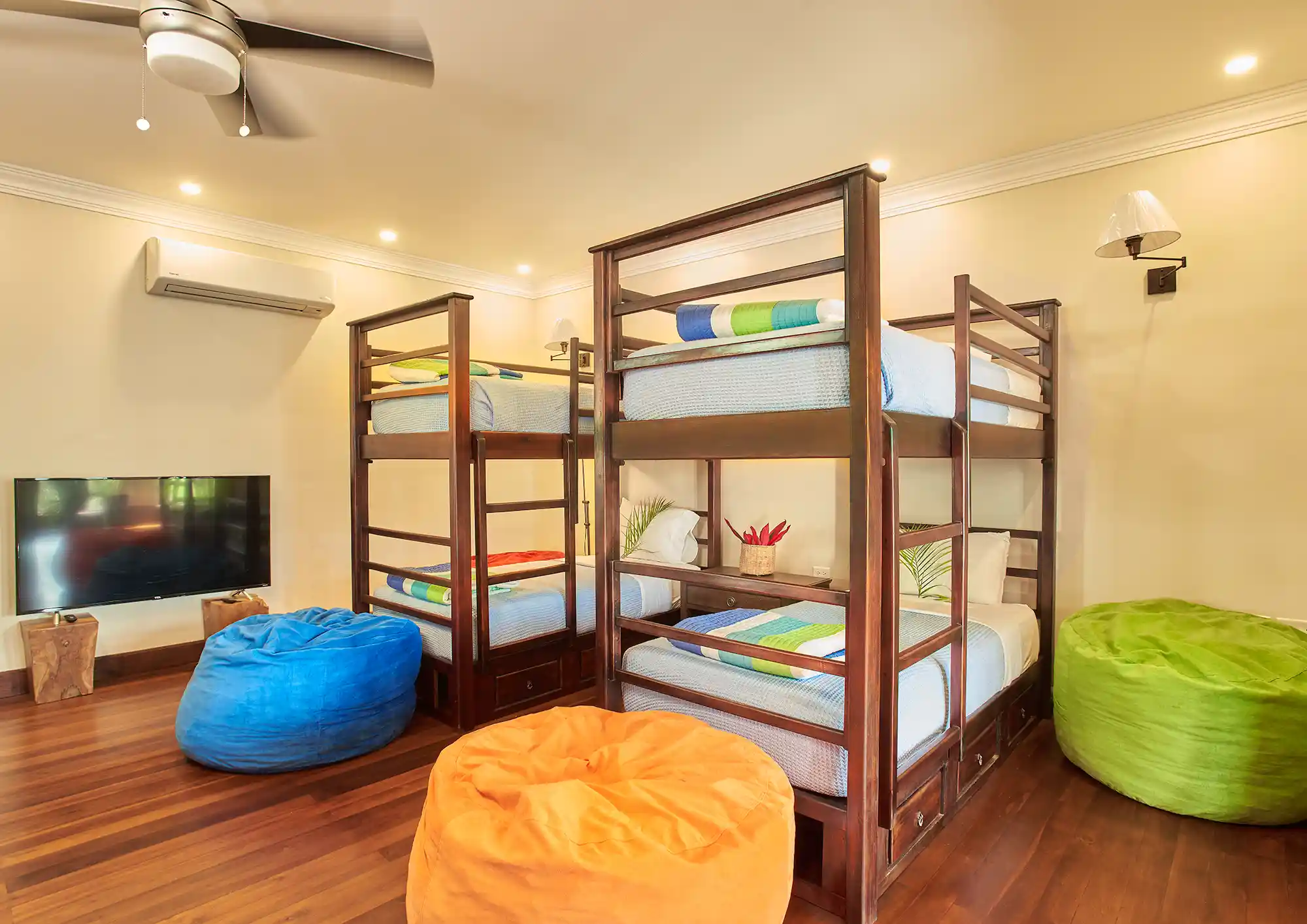 2 sets of bunk beds, sleeping up to 4 children. There is no en-suite bathroom. Children share their parents’ bathroom