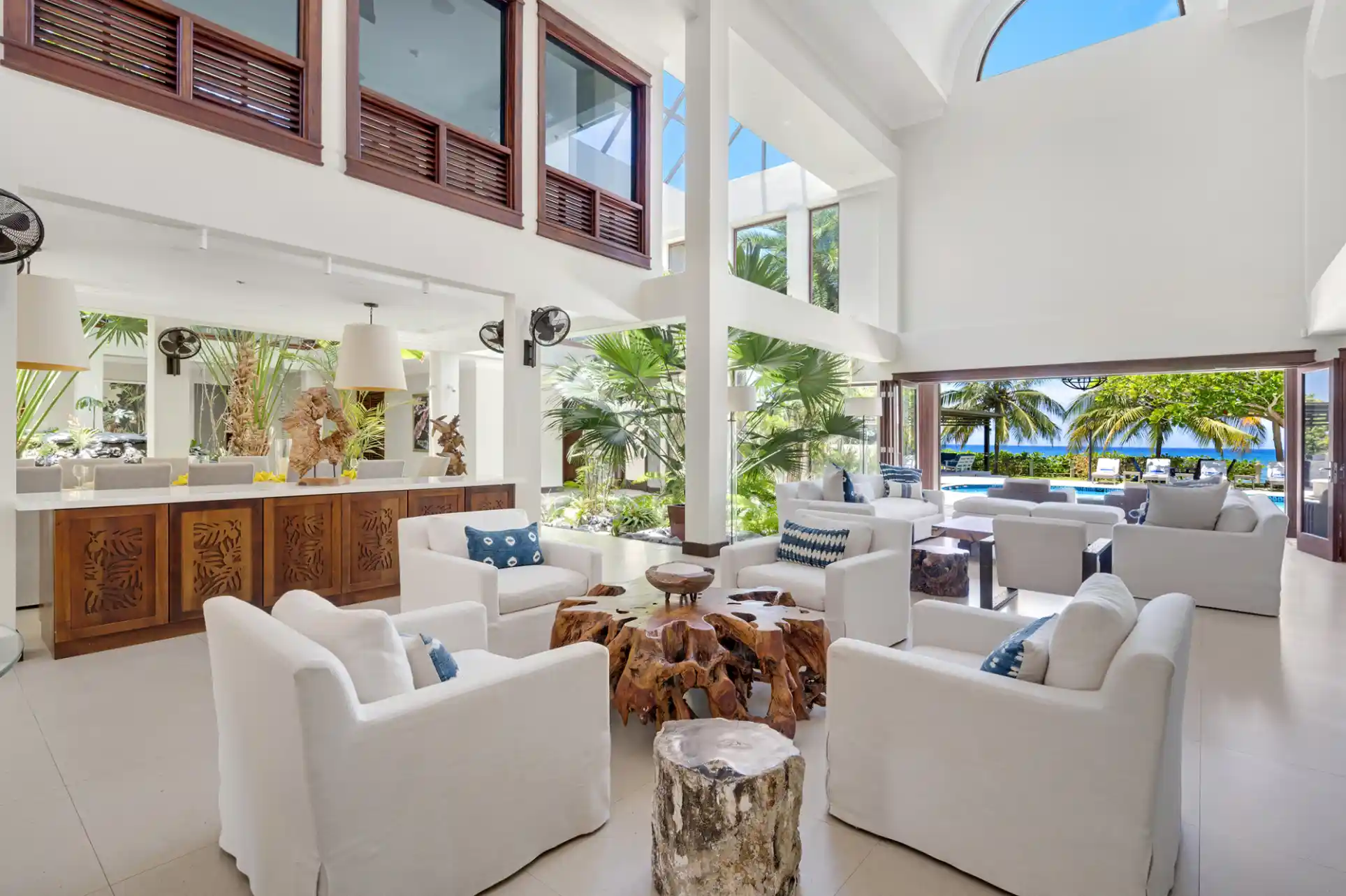 Breakaway is a wonderfully large, airy, and spacious villa, with a multitude of comfortable seating areas. From arrival through the large doors, all the way to the ocean view, Breakaway gives you a feeling of space & tranquility. The outside areas are perfectly filled with dining, sitting, sporting, gathering, and relaxation in mind.