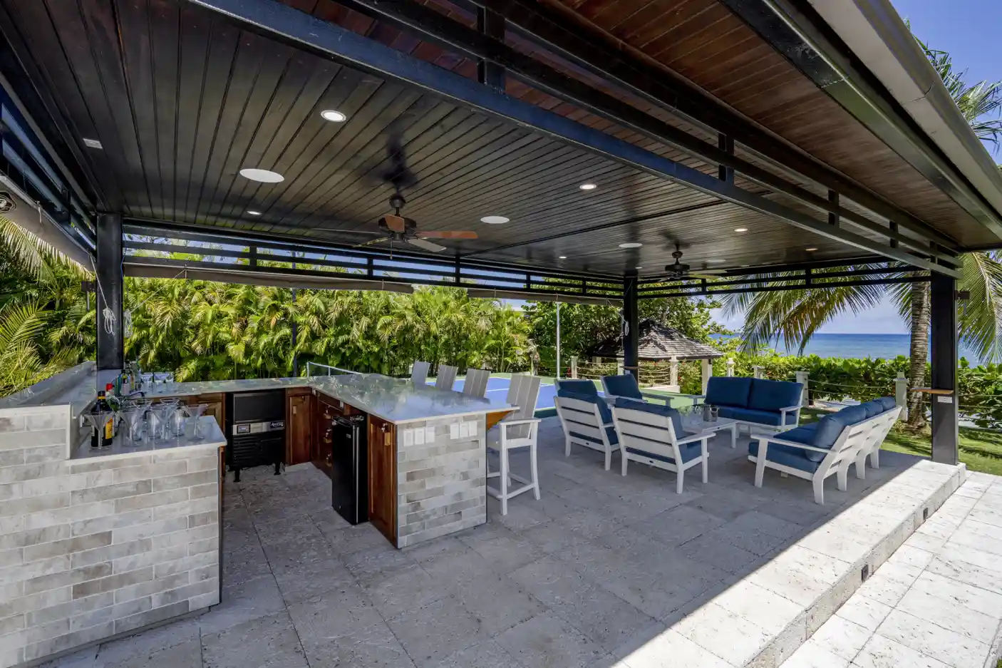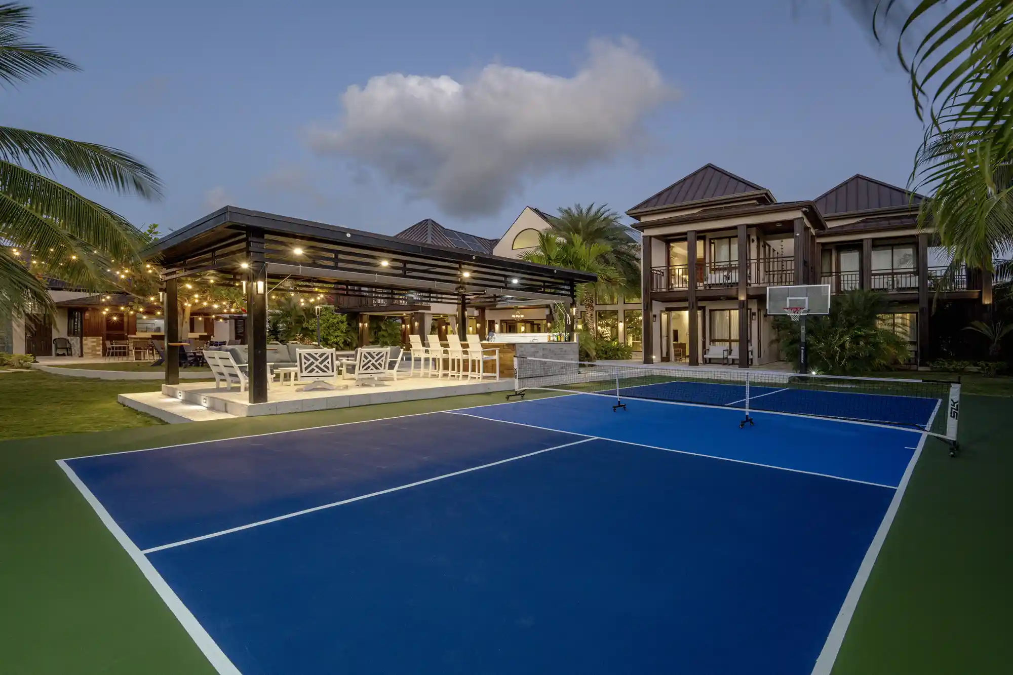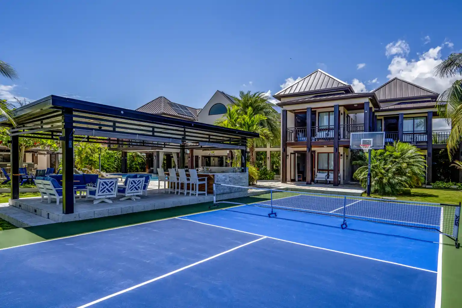 - Pickleball court & basketball hoop with a covered lounge & full bar area