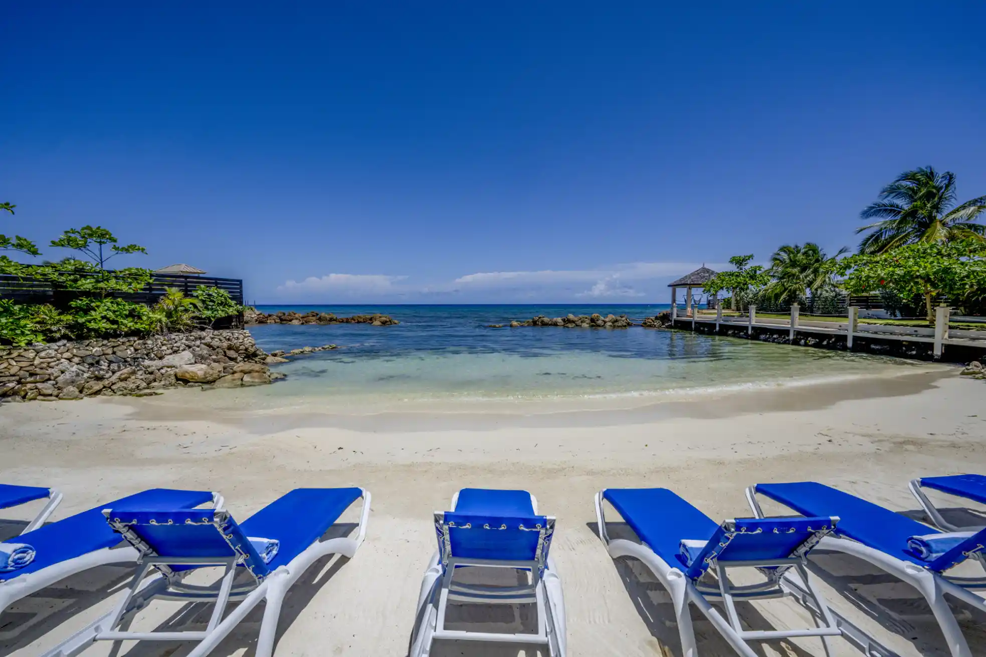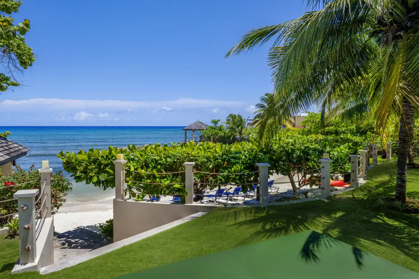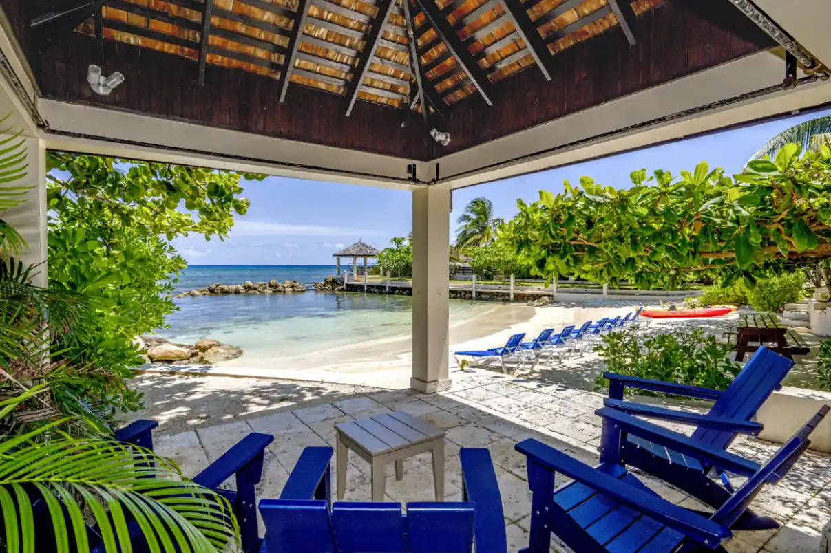 - Private beach front with sandy beach, loungers, and a gazebo