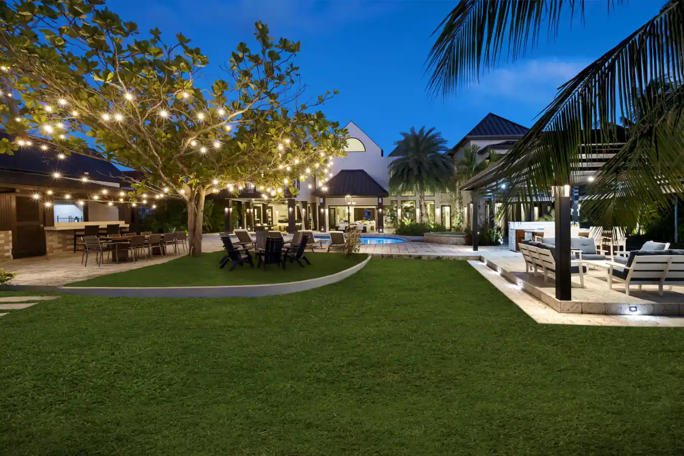 - Modern outdoor kitchen and dining with grill station